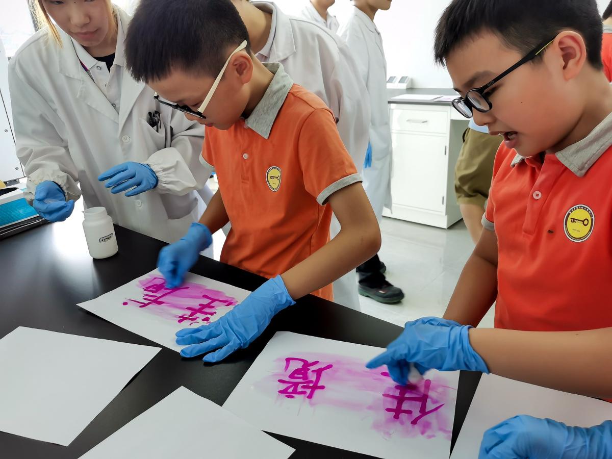 行程的最后一站是参观实验室&化学小实验。在实验室主任的带领下,小访客们认识到了许多高新化学仪器,还亲身体验了神奇的实验——“化学密函”。